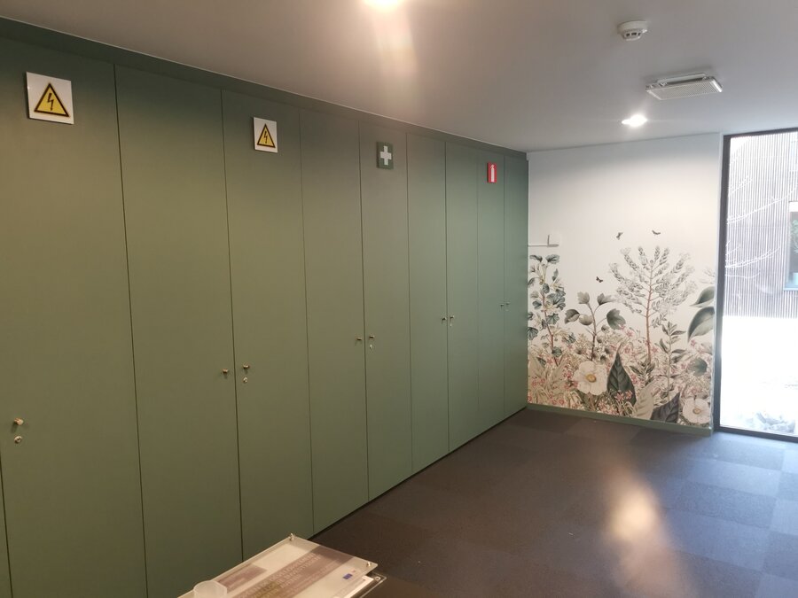 Avec Pino, nous avons relevé le défi avec enthousiasme. Nous avons peint toute la cage d’escalier et les bureaux dans des couleurs beaucoup plus apaisantes : un blanc lumineux et un vert doux. Ce choix de teintes a transformé l’atmosphère des lieux, offrant un cadre bien plus agréable et propice au travail.